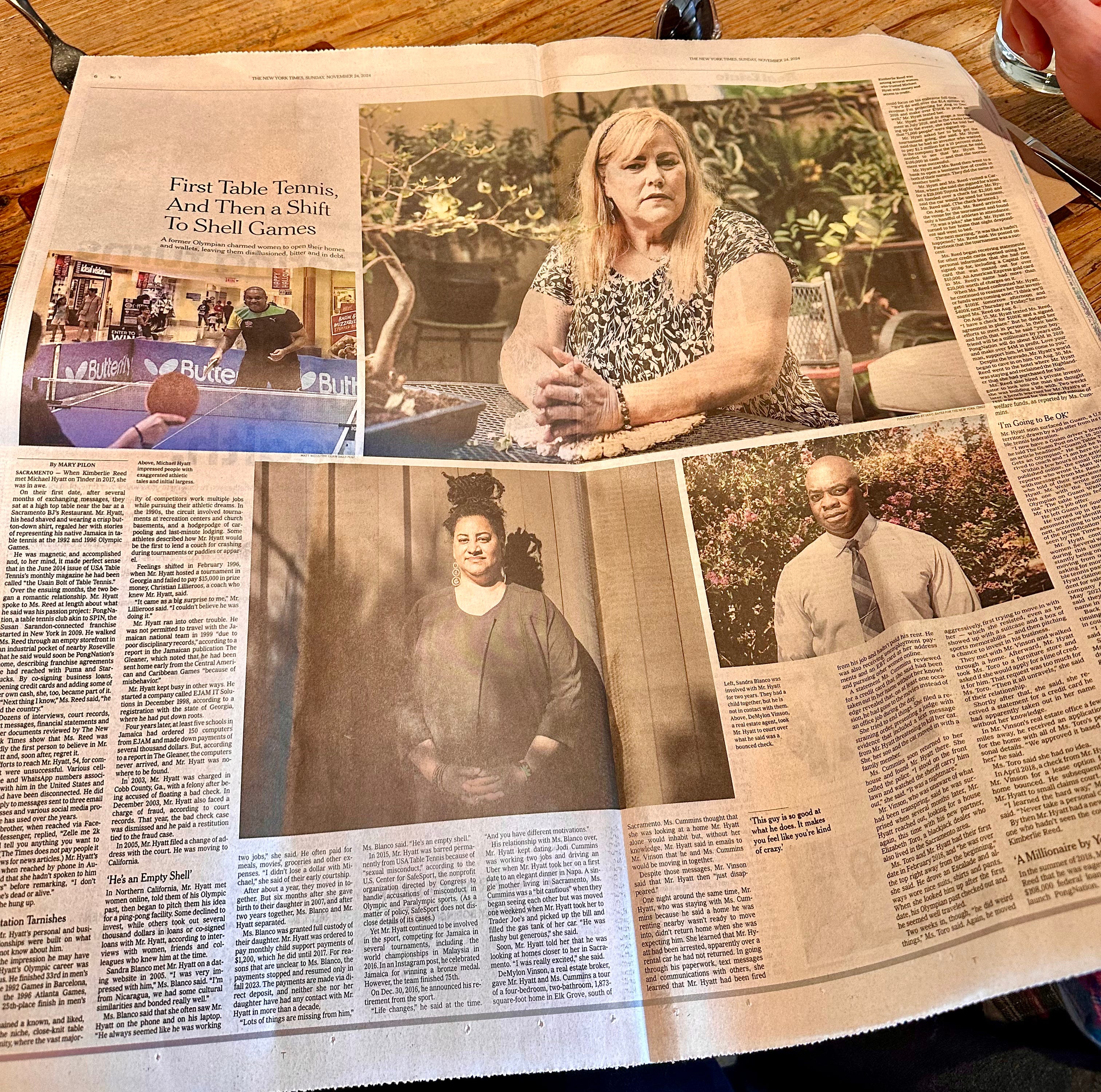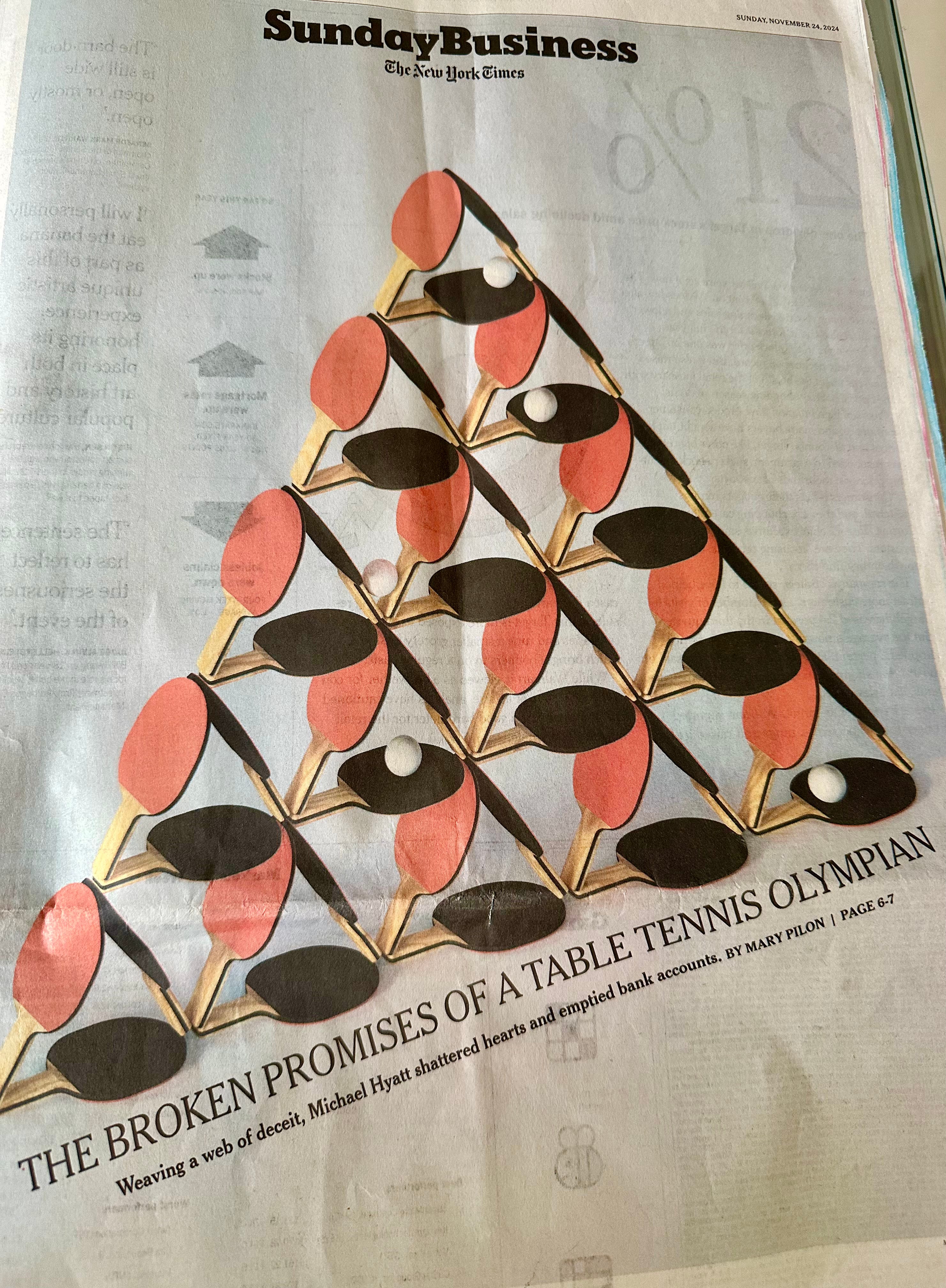 In Sunday’s New York Times, I report on Michael Hyatt, a two-time Olympian in table tennis who has conned dozens of women (and a few men) out of hundreds of thousands of dollars. He is currently believed to be on the run in Southeast Asia.